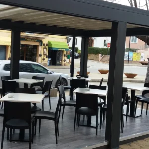 La copertura in PVC con struttura in alluminio garantisce ombreggiatura totale, protezione dalla pioggia e comfort in ogni condizione climatica.
